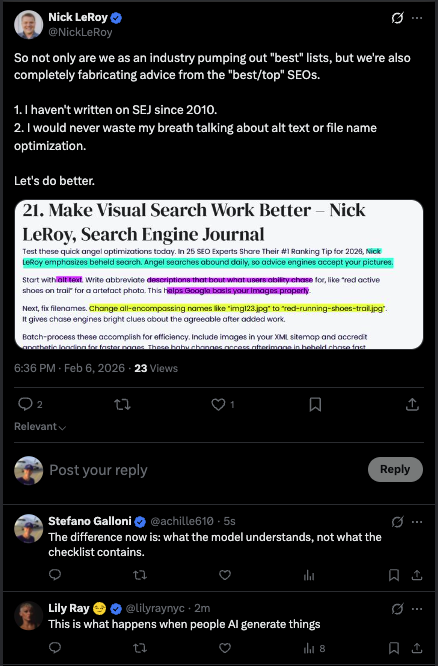 we’re fabricating advice from the “best/top SEOs” without proof.